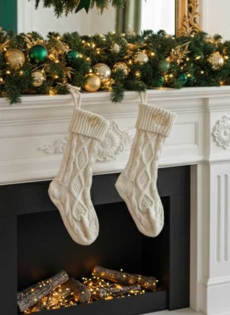You will love these “Mrs. & Mr.” or “Mrs. & Mrs.” stockings—made from premium, thick knit material with a classic cable design and gold colored embroidered lettering for that extra festive touch. Each stocking includes a sturdy loop, perfect for hanging on your mantle.