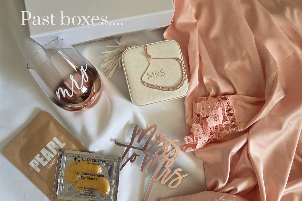 - Your subscription begins with our Signature Box designed to kick-off your wedding planning in style (shown - see FAQ for description) and continues with 2 additional themed boxes.